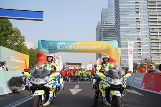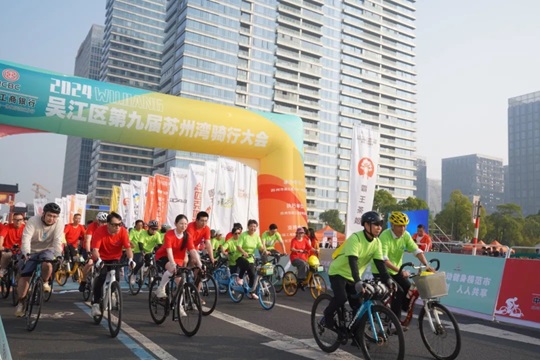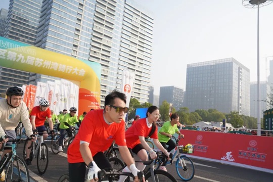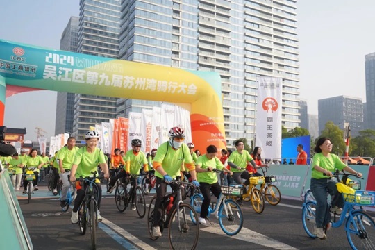 天朗氣清,湖波蕩漾,在全國場地自行車錦標賽冠軍唐佳雯、沈燕的鳴笛發(fā)令下,騎行正式開始。榮譽騎行隊和大眾騎行隊先后出發(fā),以湖景街東太湖大道路口為起點,沿太湖而行,領(lǐng)略灣區(qū)魅力,感受新城風光。