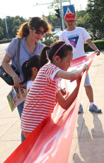 當日下午3時,實踐小隊騎著由永安公司提供的綠色公共自行車從河海大學北門出發(fā),途經(jīng)紫荊公園、中華恐龍園、新北萬達廣場。期間實踐小隊,進行了發(fā)放宣傳單、百人簽名等活動,截止晚上8點,活動圓滿結束。