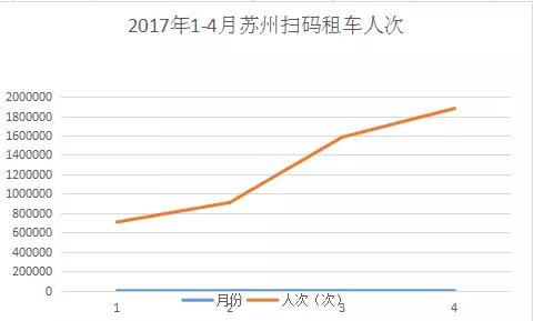 當(dāng)你還為怎樣合理運(yùn)營苦惱時,我們已經(jīng)實現(xiàn)高質(zhì)量服務(wù)。2017年1-4月掃碼租車騎行量呈明顯上升趨勢。月單次借車量高達(dá)1879046次,日用車量最大達(dá)117350次。