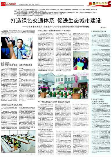 打造綠色交通體系促進生態(tài)城市建設(shè)—訪常州市政協(xié)委員常州永安公共自行車系統(tǒng)股份有限公司董事長孫繼勝