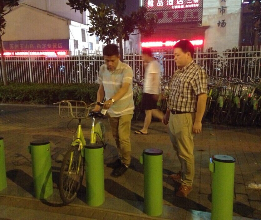 蘇州高新區(qū)城市維護(hù)管理處是高新區(qū)公共自行車項(xiàng)目的監(jiān)管單位。監(jiān)管單位領(lǐng)導(dǎo)張科長(zhǎng)和蘇州公共自行車管理中心劉總,在6月18日晚上,放棄休息時(shí)間,對(duì)高新區(qū)公共自行車站點(diǎn)進(jìn)行了現(xiàn)場(chǎng)突擊檢查。他們對(duì)抽查的站點(diǎn)車輛進(jìn)行逐一檢查。檢查結(jié)果車輛擺放整齊、備車規(guī)范、備車實(shí)數(shù)與后臺(tái)系統(tǒng)顯示相同,衛(wèi)生狀況良好,經(jīng)當(dāng)晚系統(tǒng)匯總后,高新區(qū)區(qū)內(nèi)公共自行車保有量達(dá)到92%以上。