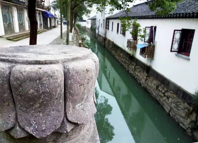 從橋上也能看到光福古鎮(zhèn)里的江南風光。枕河人家,白墻黑瓦,流水潺潺,也是頗有意境。