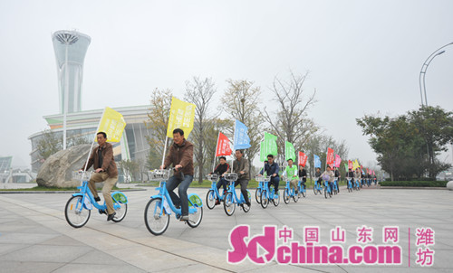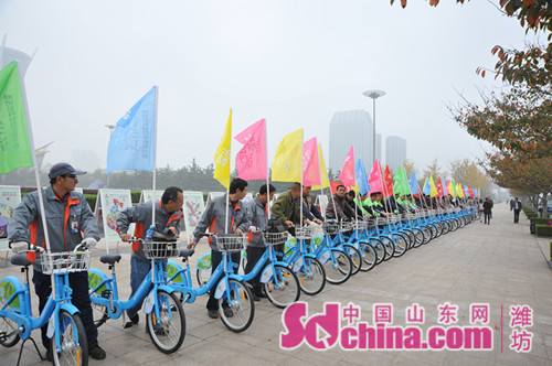 中國山東網(wǎng)濰坊頻道11月1日訊 濰坊公共自行車項(xiàng)目自去年11月1日正式運(yùn)營以來,至今已一年時間。為讓更多人選擇公共自行車出行方式,今日上午,濰坊市市政局舉行“慶祝濰坊公共自行車運(yùn)行一周年騎行活動”,并為全市騎行數(shù)量最多和騎行時間最長,以及第一名辦卡的市民頒獎,其中騎行時間最長的市民共計(jì)騎行58451分鐘,即平均每天騎行兩個半小時以上。
