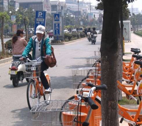4月25日常熟公共自行車試運營,常熟便民公共自行車服務(wù)中心的工作人員向市民介紹如何辦理公共自行車借車卡,并熱情向市民解答公共自行車的相關(guān)疑問,并有市民在街頭試騎公共自行車。