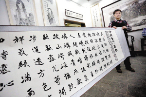 14米書法長卷現(xiàn)場展出,賦文由其作協(xié)會員薛剛撰寫,共